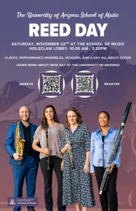 For full schedule of events, online registration, tickets, and for general information about UA Reed Day, visit: https://saxophone.music.arizona.edu/reedday/