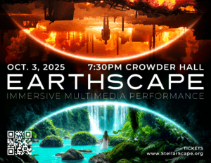 On October 3, 2025, audiences will enter Crowder Hall for EarthScape, a groundbreaking multimedia performance by composer and multimedia artist Professor YuanYuan (Kay) He. Combining electroacoustic music, interactive visuals, light, and dance, the work transcends the boundaries of traditional performance to explore planetary history, human emotion, and our shared responsibility for Earth’s future.